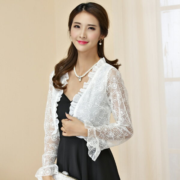 飄逸優雅高雅時尚, 灰姑娘[9745-JK]滾波浪邊開衫鏤空蕾絲花朵長袖披肩外套。在樂天市場的灰姑娘衣著館有最棒的商品,是您省錢的最佳選擇。