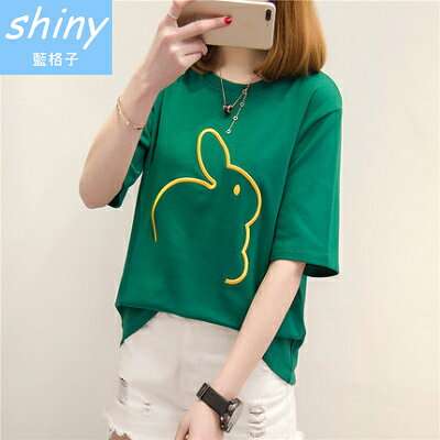 None, ~399超商免運 599折30 輸入代號 M7OJ-IPQJ-ZB18-R5YO【V8118】shiny藍格子-俏皮甜搭.可愛小兔刺繡圓領寬鬆短袖上衣。在樂天市場的shiny藍格子有最棒的商品,是您省錢的最佳選擇。
